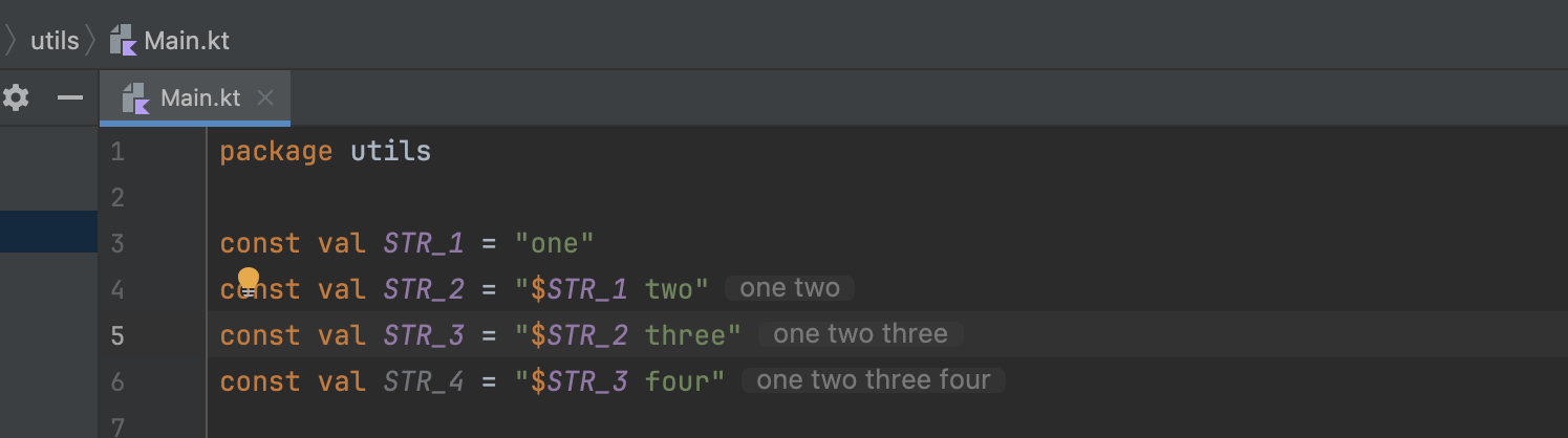 Kotlin Inlay Hints display computed values of string interpolations and constants directly inline in your code, making it easier to understand what your code does without having to run it.